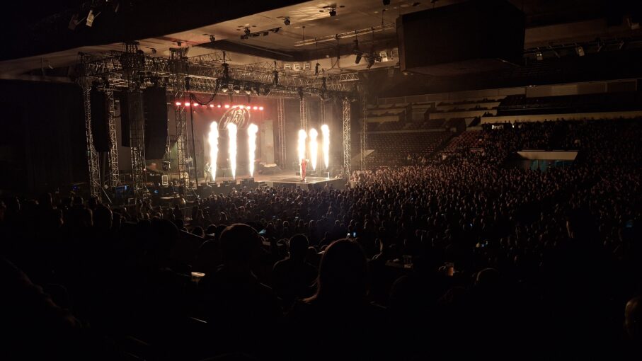 Během přestávek mezi vystoupeními se v útrobách arény tvořily fronty na jídlo, pití i toalety. Pauzy nebyly dlouhé, takže mnoho lidí se do haly vracelo až po začátku dalších setů. Před hlavním hřebem večera — Parkway Drive — přišel epický nástup. Kapela dorazila mezi fanoušky s vlajkami, za doprovodu monumentálního hudebního podkladu připomínajícího MMA vstup. A pak to začalo — syrový zvuk, masivní kytarové i basové riffy a dokonalá souhra. Zvuk byl naprosto precizní.