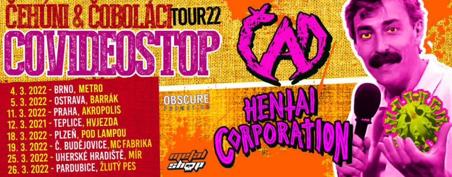 Čehúni & Čoboláci, společné turné Hentai Corporation a Čad, se mělo původně uskutečnit už na podzim 2020 k tehdy novému EP Hentai Corporation. Kovidové šarády ho ale totálně zhatily a neuskutečnilo se pak ani o rok později. Napotřetí byly termíny naplánovány na jaro 2022, ale kvůli situaci v zimě 2021 a navíc nyní s Omikronem za zády to vypadalo, že i tentokrát to nedopadne. Ale našla se zázračná čistící videokazeta, a tak obě kapely nakonec startují v čele s transformerem Janem (ka)Rosákem a odjedou alespoň české štace hlásíce Covideostop zlosynnému Omikronovi!