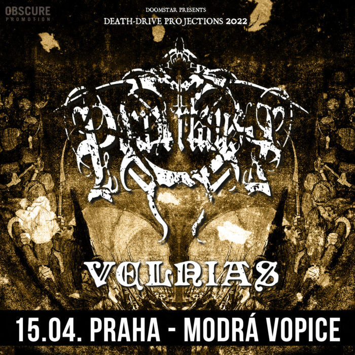 Evropské turné zahrnuje též jejich o rok mladší stájové kolegy VELNIAS z amerického Colorada. Pedál jejich rychlosti je tu sešlápnut na úplně jinou úroveň. Pomalejší, s doomem koketující tvorba je sice černým karbonem prorostlá, ale na povrch se derou vznosnější, až bathoryovské polohy, které nemají daleko k pagan a folk náladám, takže nabízí více prostoru k nadechnutí než hlavní kapela večera.