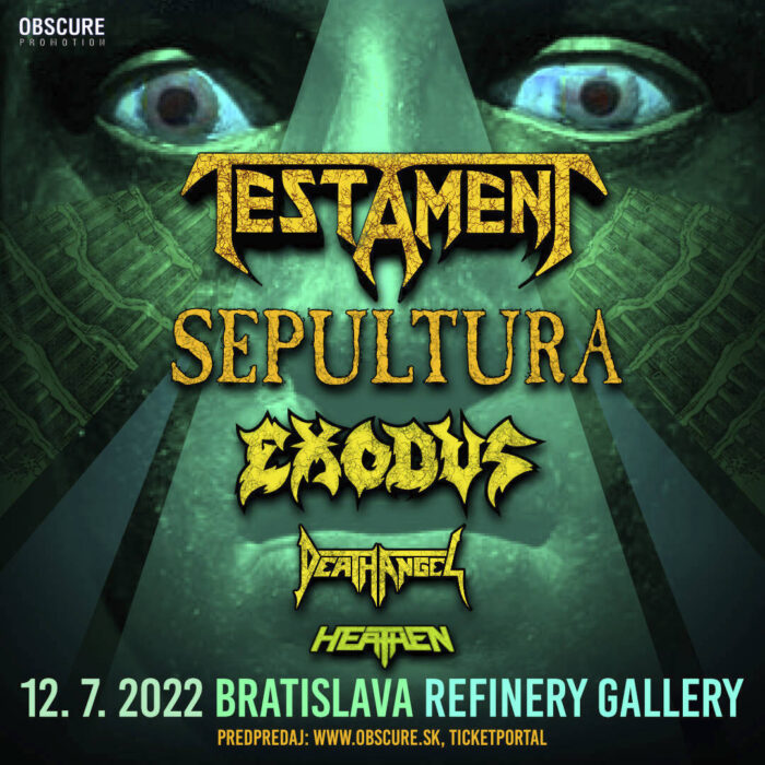 Do Bratislavy míří ultimátní sestava a sen každého true thrashmetalisty: Testament, Sepultura, Exodus, Death Angel a Heathen. Koncert není zastávka společného tour, ale jde unikátní setkání třech různých turné v jednom městě a v jeden večer. To, co se 12. července odehraje v Refinery Gallery, se nebude opakovat nikde jinde na světě.