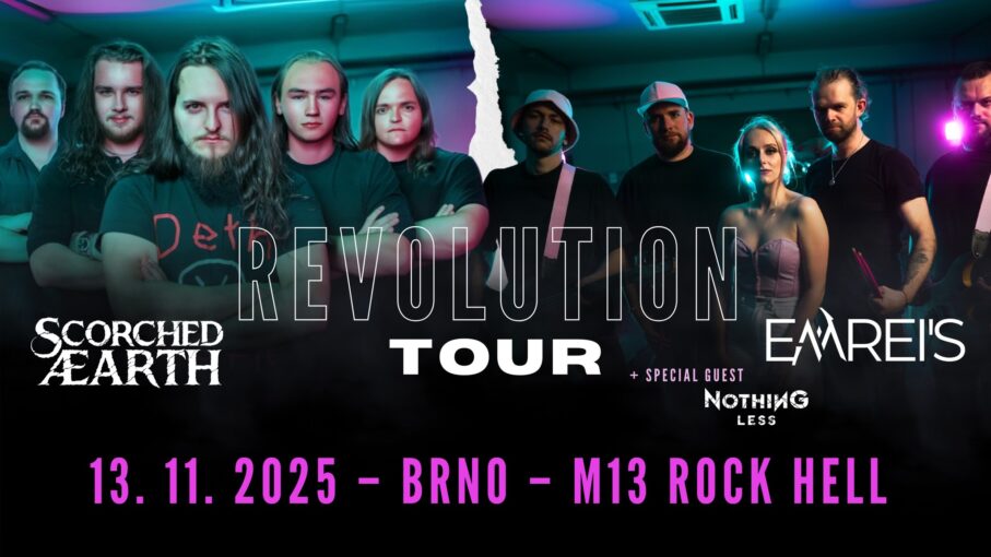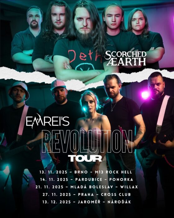 Kapely Scorched Æarth a Emreis se vydávají na Revolution Tour po České Republice. Netradiční spojení female fronted moderního symfonického metalu v podání Emrei’s a groove-deathmetalové mašinérie Scorched Æarth ma za cíl připomenout společné kořeny obou kapel. Na jednotlivých zastávkách vystoupí mimo headlinery: Rosa Nocturna, Alteract, Human Scum, Last Day in Wonderland a Nothing Less.