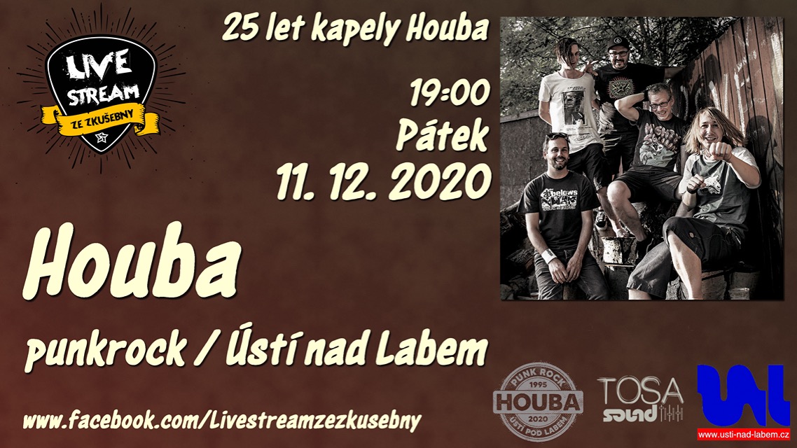 Dalším kdo se přidá do party Live streamů ze zkušebny, bude Houba z Ústí pod Labem. 11.12. 2020 od 19:00 proběhne rozhovor s Houbou, který povede Peťan z kapely...