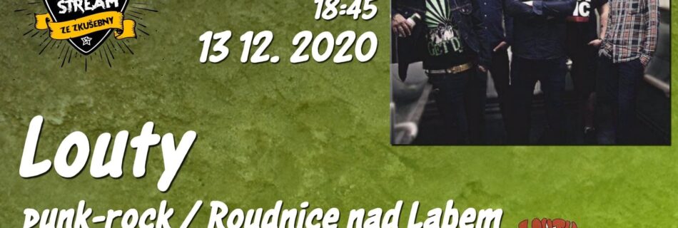 Livestream ze zkušebny prokračuje i dnes. Můžete se těšit na melodický punkrock v podání kapely Louty z Roudnice nad Labem. Pánové si letos zahráli na Olešku, Limen Boomstick a dalších místech, tak uvidíme, jak jim to půjde on-line v 18:45. Foto: Facebook